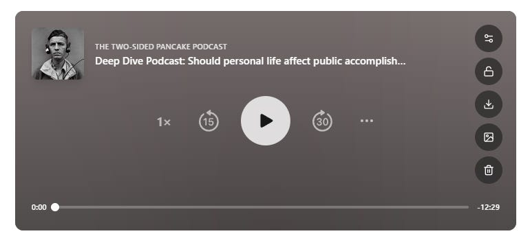 I followed up this past week with another Deep Dive using my post on The Pete Rose Hall of Fame Debate: Should He Be Admitted? which ultimately addressed the larger question of whether one's character should be a qualifier for public recognition of one's professional accomplishments. Again, I uploaded a PDF of my text. The “podcast” produced in about two minutes blew me away.